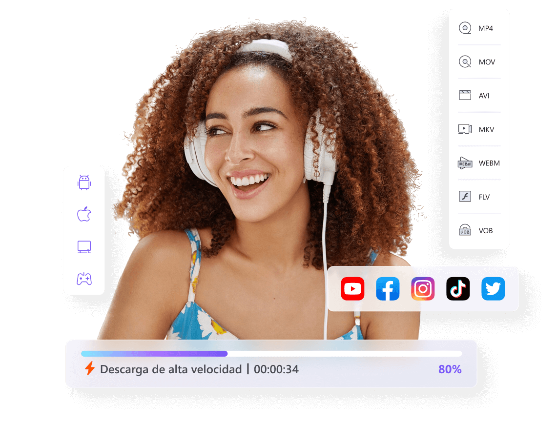Descargar vídeos en HD, MP4, MP3, AVI, 3GP, FLV, etc.