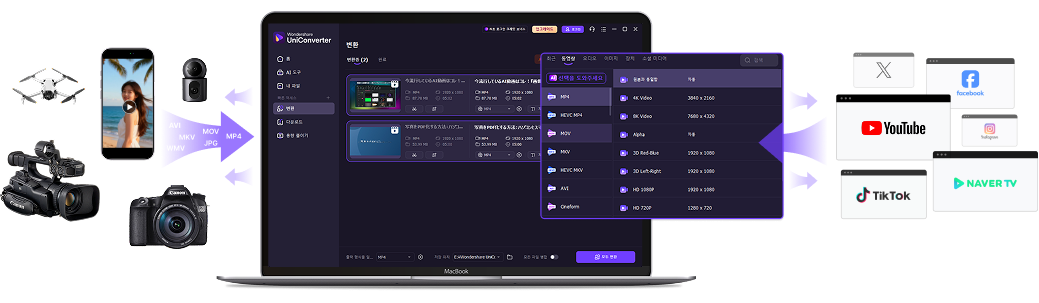 | 변환 | 1000+ 형식 지원 동영상/오디오/이미지/DVD | ![]() |